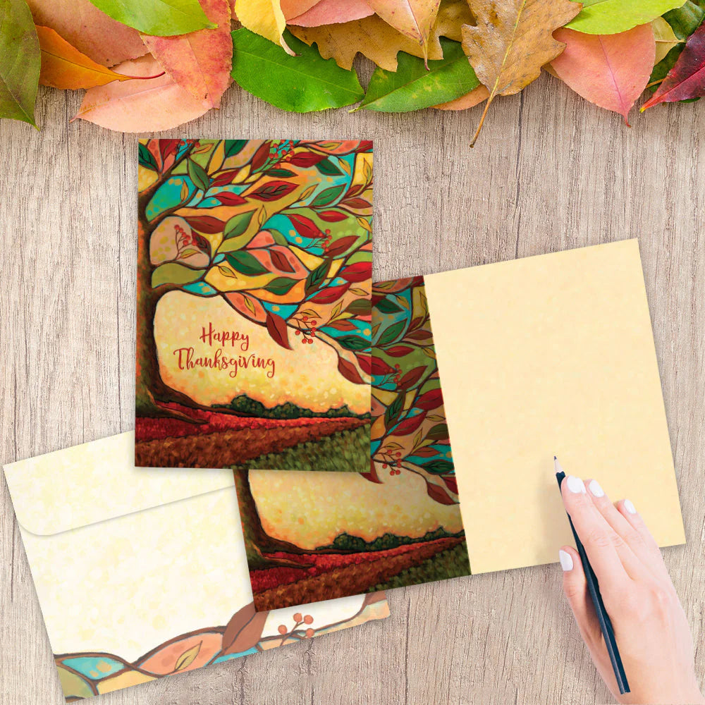This 5 x 7 Thanksgiving greeting card reads "Happy Thanksgiving" on the coverand is blank on the inside. It features art by Peggy Davis, includes a fully printed matching ARTvelope, and is made from 100% post-consumer recycled material.