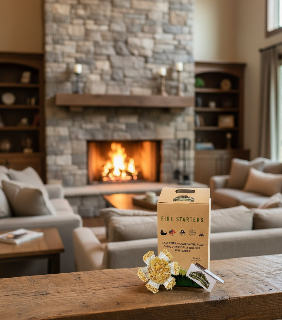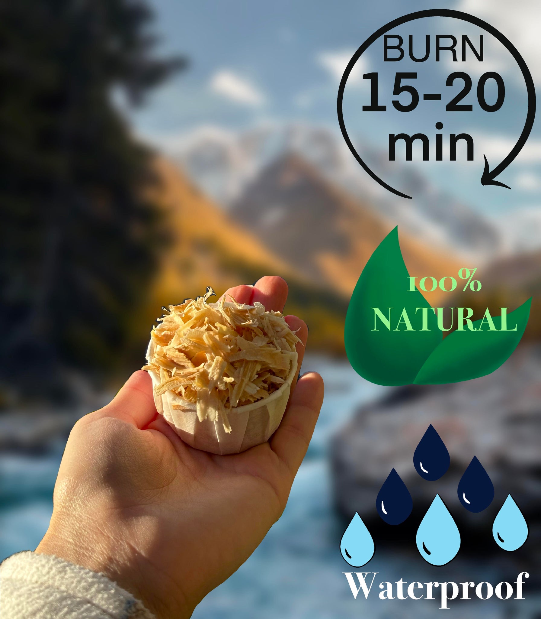 The NH Eco Woods Fire Starter Box contains eco-friendly, handcrafted fire starters made from natural wood shavings and wax. Designed by a dedicated Ukrainian team now based in New Hampshire, each starter reliably burns for up to 15 minutes, providing efficient ignition for fireplaces, grills, and campfires. Safe and clean, they burn without producing unpleasant odors or smoke. Ideal for those who prioritize comfort and environmental responsibility, these fire starters offer an expert solution for effortless, eco-conscious fire lighting.